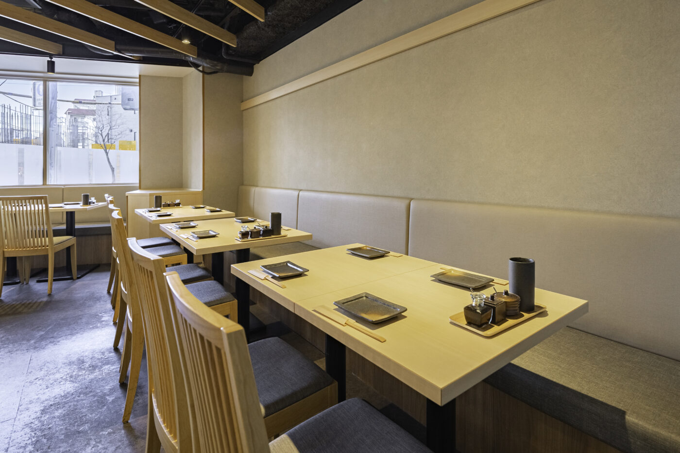 心地よい光が差し込む大きな窓は、解放感と入りやすさを醸します。